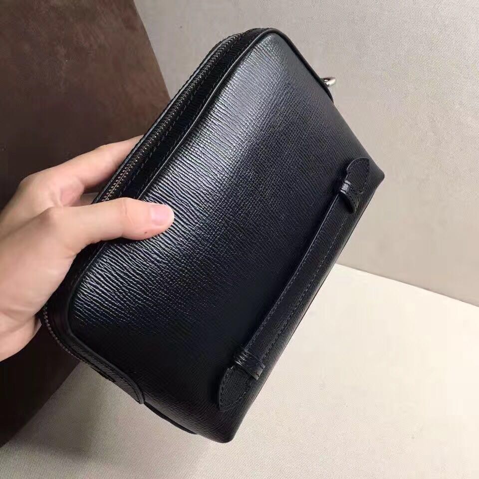 货B家掌纹牛皮钱夹式收纳袋,可拆式提柄与后侧绊带细节,便于轻松携带,内袋附小牛皮8 个卡位加拉链内袋,尺寸:23 x 5 x 15.5cm