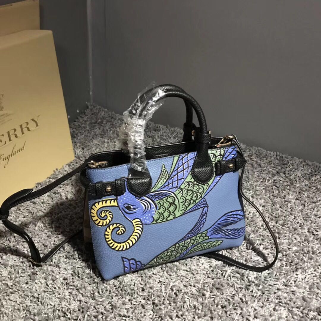 巴宝莉班纳包刘亦菲 B家女士小号班纳包,进口头层牛皮材质,搭配印染怪兽图案,配有防尘袋、吊牌!尺寸:26/12/19cm