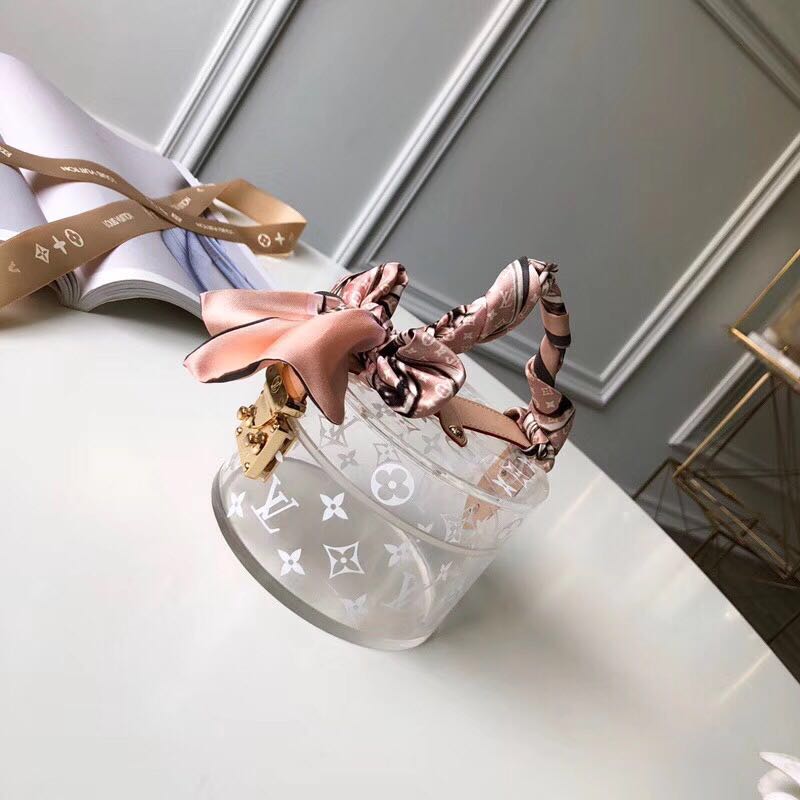 2018 lv走秀款 原单 2018最新款LV走秀款 透明金属扣圆盒子 手提老花塑料包包 GI0203 到货