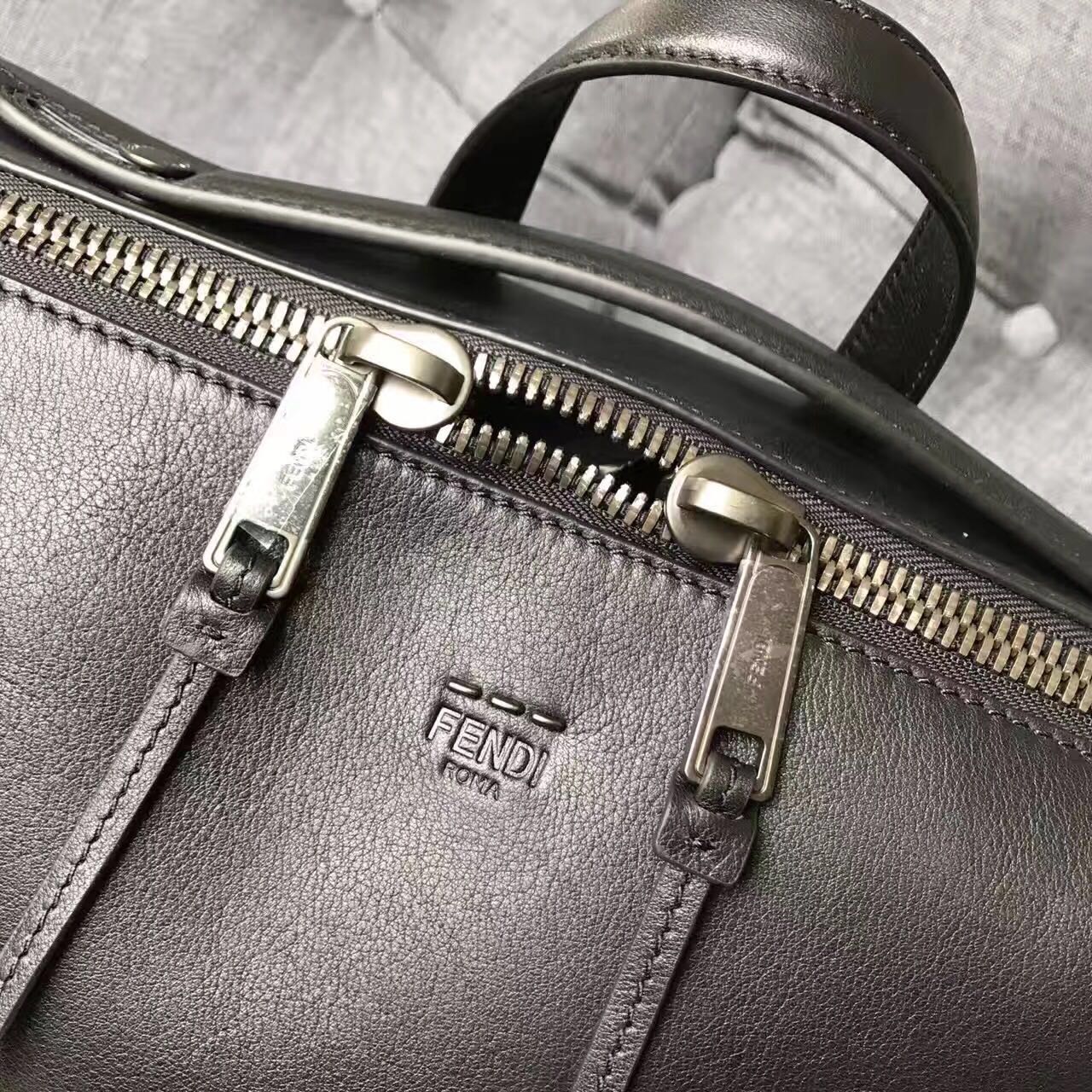 Fendi 男款公文包 黑色现货应广大亲们的需求,咱们家开发出一款男士公文包,原版牛皮材质,皮质手感、风格,不亚于ZP,细节都是公认的perfect,简约大气风范,size对于男性同胞们,完全可以满足其所需,电脑什么的轻松塞入,尺寸35.5*15*27cm