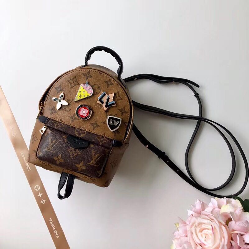 lv双肩包mini带子系法 购物加微信bag88866 新品~原单~MONOGRAM BACKPACK MINI 双肩包彩色花Nicolas Ghesquière赋予此款背包惊人的风格变化,将一件朴素的日用品变为一款时髦而极度迷人的都市包袋。此款由柔软的Monogram帆布制成的迷你背包娇小可爱,拥有多用背带,方便斜背。尺寸:15×22×9