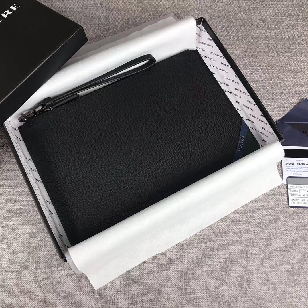 北京高仿包包批发货源购物加微信bag88866 【原单代购级】PRADA男士手包 专柜最新款式,官网同步,正品开发,型号2NG005,拼色字唛,内码布标165代工码 意大利顶级原单十字纹牛皮质感极好,内里进口羊皮,原单Lampo拉链 进口枪色五金配件!精湛走线均匀整齐 纯手工油边平滑,做工精湛 品质媲美正品,尺寸:长28cm高18cm【配原单包装盒身份证卡片编号可扫码】