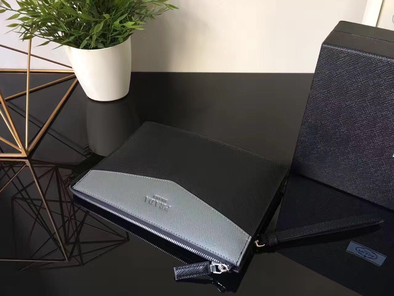 P家出款手包672,黑配灰,顶级货,专柜同步,采用进口粗十字纹牛皮,175代工码,轻便+时尚,手感超赞,175代工码,长26X高16.5X4cm, prada香港官网价格 prada杀手包