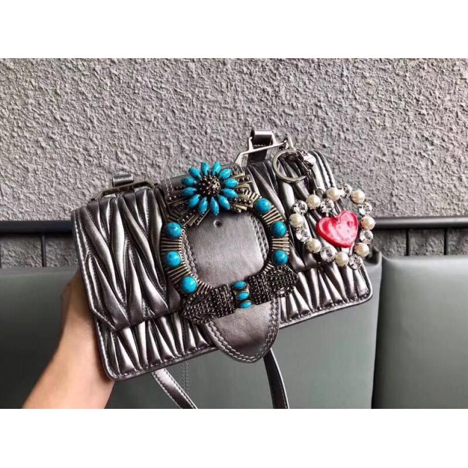 miumiu包报价购物加微信bag88866 Miumiu专柜同步又一火爆款,型号5BH609,采用顶级进口小羊皮,提花凸纹做法,订制级复古钢质五金,全新宝石钉大钻花,内里一个拉链小内袋,棉缎衬里,不可拆卸的115cm小羊皮肩带,百搭时尚,尺寸22.5X14X7(配原版包装)