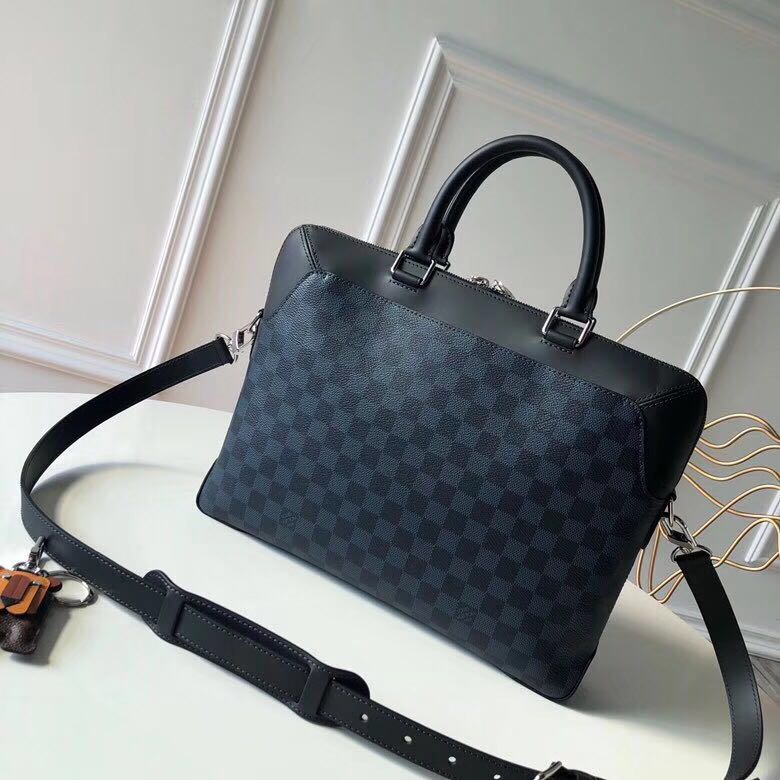 N51199 由Damier Cobalt帆布裁制而成的Oliver公文包,配皮革饰边与银色金属饰件。风格时尚的商务包袋,可存放A4纸大小的文件,并设有独立的加衬手提电脑隔层。设有多个私人物品存放区域,亦可用于日常都市生活。配有可脱卸肩带,便于背挎。详细特征