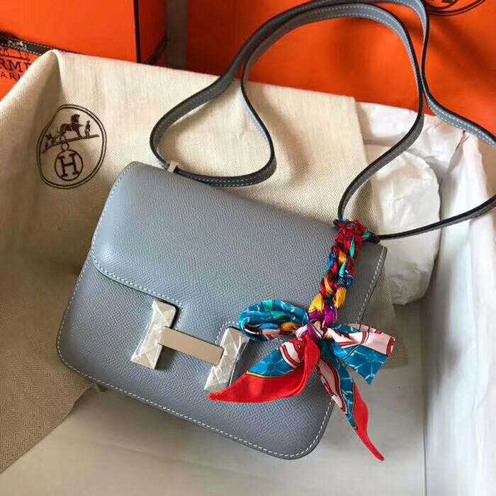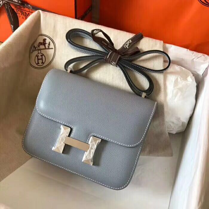 爱马仕女包价格与图片购物加微信bag88866 Constance 康康 18 23cm 亚麻蓝手工版本 进口蜜蜡线缝制 原版五金 Epsom皮质,整只包包的细节精致完美,包型的弧度圆润刚刚好,实物超级棒的做法夏天必入的一款