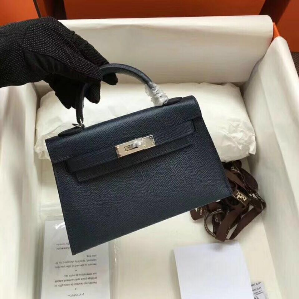 高仿爱马仕货源购物加微bag88866 现货 mini 2代 午夜蓝 EPSOM 19cm 金 银 均有