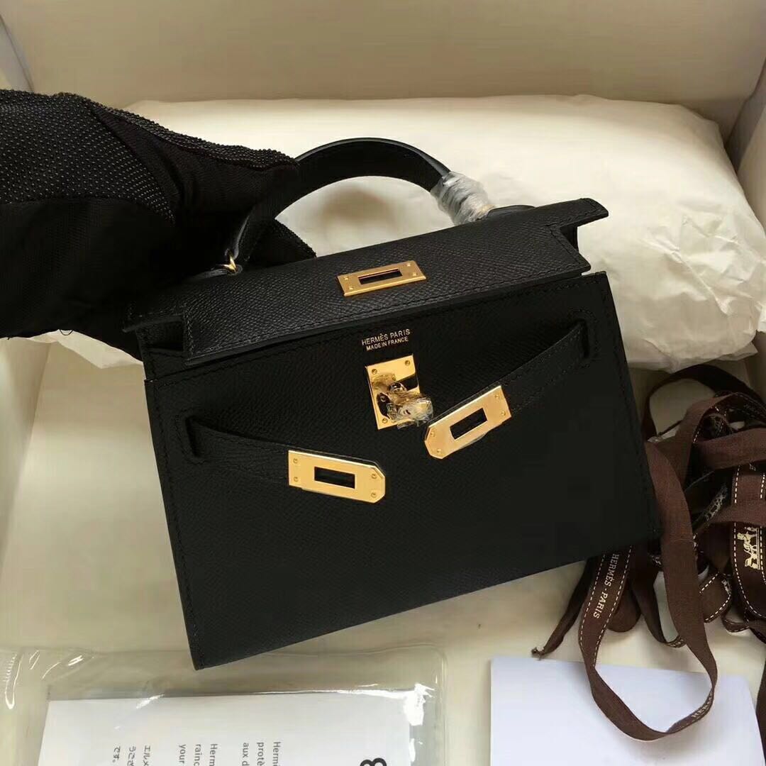 爱马仕凯莉包真假购物加微bag88866 现货 mini 2代 黑色EPSOM 19cm 金 银 均有