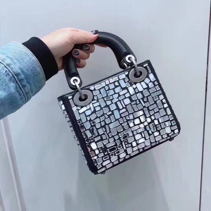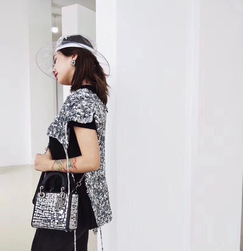 dior的包包多少钱购物加微信bag88866 D家限量款亮片包,银色破碎镜面的碎片真的好有创意,颜色也显眼。种草种草!!尺寸:17cm