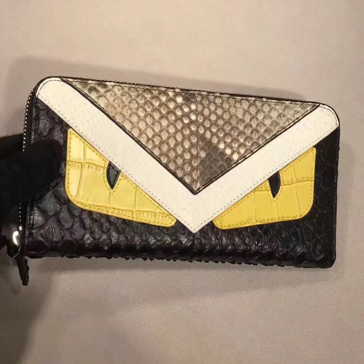芬迪小怪兽钱包真假购物加微信bag88866 FENDI 0213 蛇皮CRAYONS环绕式拉链皮夹,接裆式隔层、拉链口袋、8个卡片夹层和1个平盖袋。19cm(盒子礼品袋)