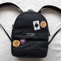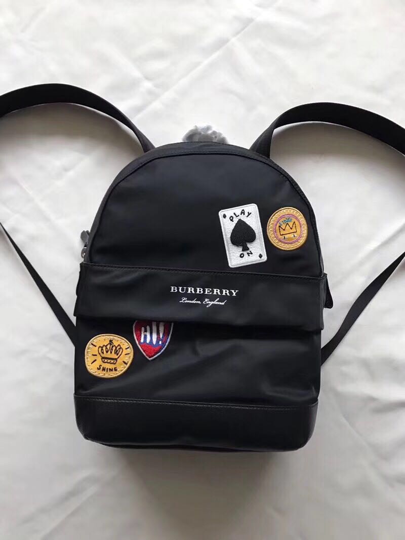 仿巴宝莉包包双肩购物加微信bag88866 B家新款双肩包,装饰趣味徽章嵌花,设计有多个口袋。可调试加垫肩背带赋予舒适体验,还可做亲子款哦!旅游出行不错的选择。尺寸35-30-12cm