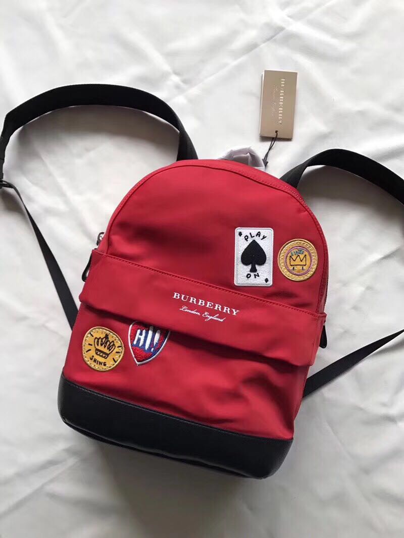 巴宝莉双肩包真假辨别购物加微信bag88866 B家新款双肩包,装饰趣味徽章嵌花,设计有多个口袋。可调试加垫肩背带赋予舒适体验,还可做亲子款哦!旅游出行不错的选择。尺寸35-30-12cm
