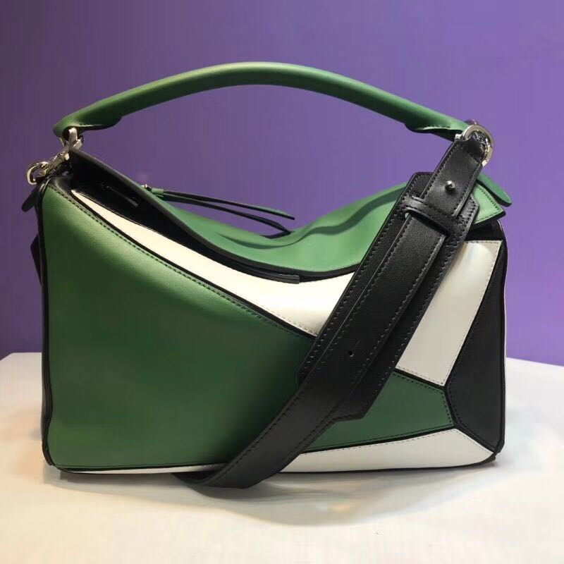 loewe puzzle价格购物加微信bag88866 爆款puzzle 新拼色出货 专柜同步 采用进口经典小牛皮精制而成 皮质超赞 纺织内衬 绿色调清新怡人 与黑色饰边形成生动对比 还原了岛屿的绚丽风光 极致触感和实用性 Size: 中号30*12*19cm