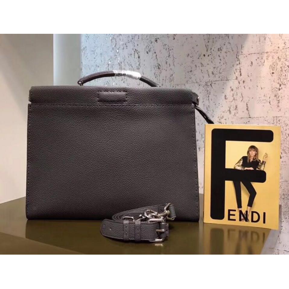 芬迪怎么辨别真假购物加微信bag88866 FENDI 1518 纤薄手提包,透过硬隔板分隔出两个隔层,拉链口袋,正面钩扣开合,手挽和可调节可拆卸肩带,镶饰同色系BAG BUGS眼睛图案。37cm(肩带挂件另外付费)