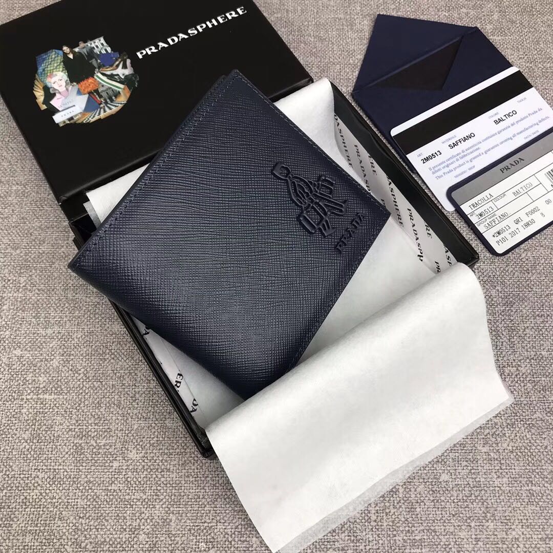 香港购物去哪里比较好购物加微信bag88866 【原单代购级】PRADA新款男士短款钱夹专柜最新同色标志、官网同步,正品开发,型号2M0513,颜色:深蓝色/同色小公仔,内码224代工码意大利顶级原单十字纹牛皮质感极好,进口螺纹里布 进口同色五金标志配件!精湛走线均匀整齐 做工精湛 油边平滑 品质媲美正品用相同颜色完成的金属标志,尽显高档时尚、低调而又奢华尺寸:长11cm高10cm【配原单包装盒身份证卡片编号可扫码】