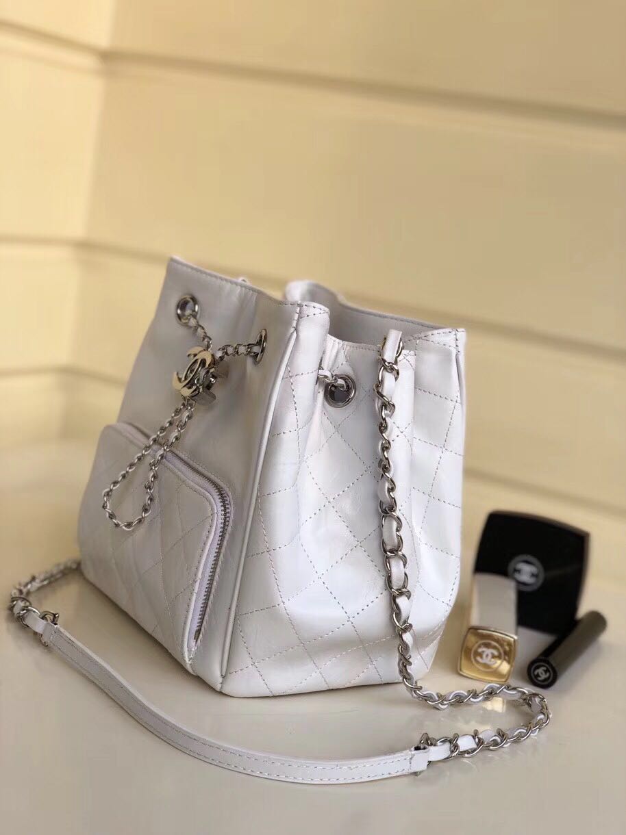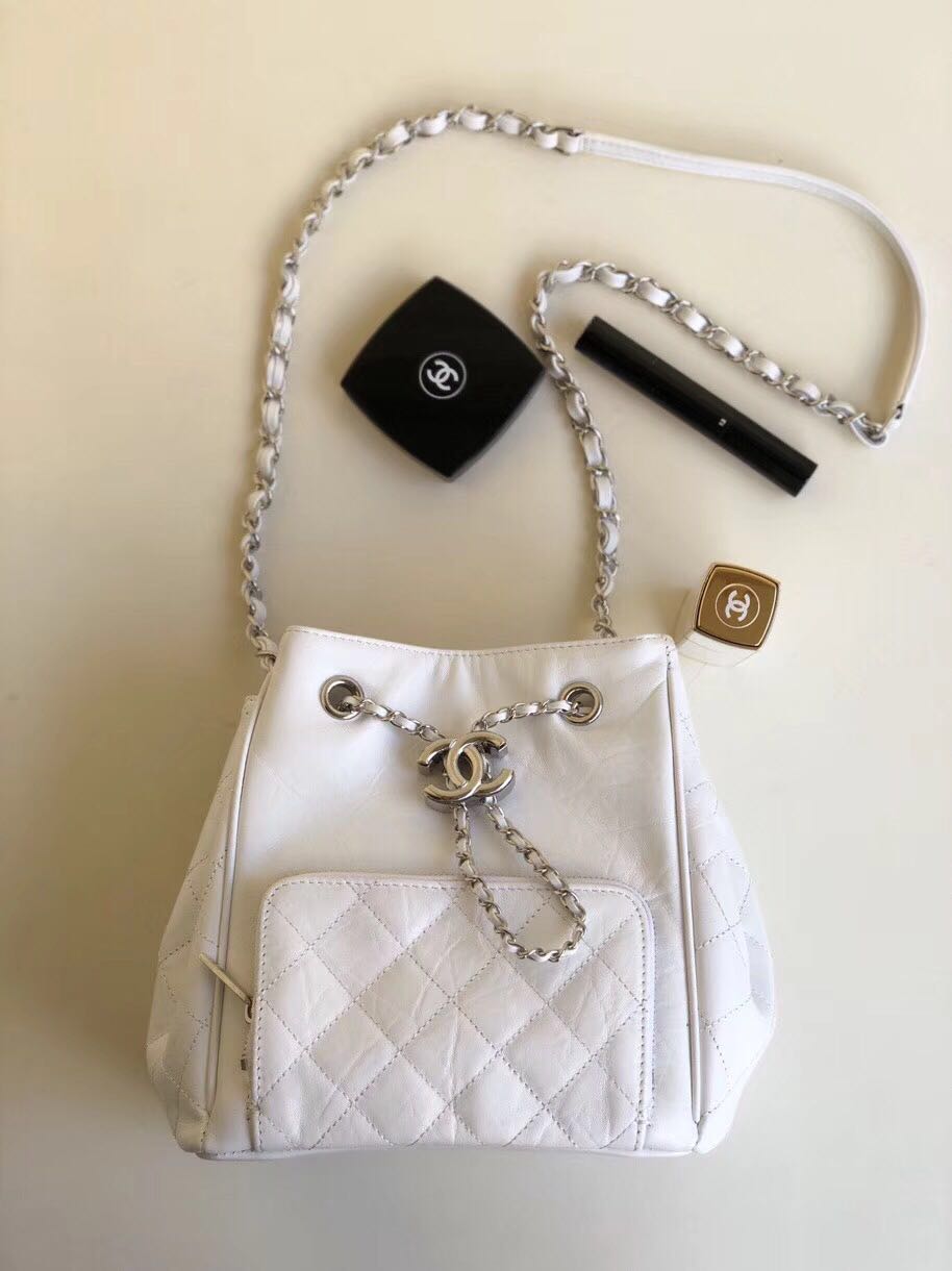 香奈儿迷你水桶包购物加微信bag88866 新品现货 Chanel 18早春度假新款折皱牛皮抽绳水桶包 抽绳缩口和皮革肩人手必备的季节款水桶~尺寸:小号19.5 X18 X12