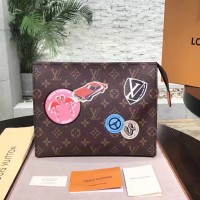 LV 原单货众多明星追捧 独家实拍26号 洗漱包 型号M41438 采用Monogram涂层帆布材质 饰有创意总监Nicolas Ghesquiere设计的趣味版经典酒店标签配件同样精钢材质大号洗漱包独有内部空间充足 侧边配有撑板便于储物‼️尺寸:26x20x5cm