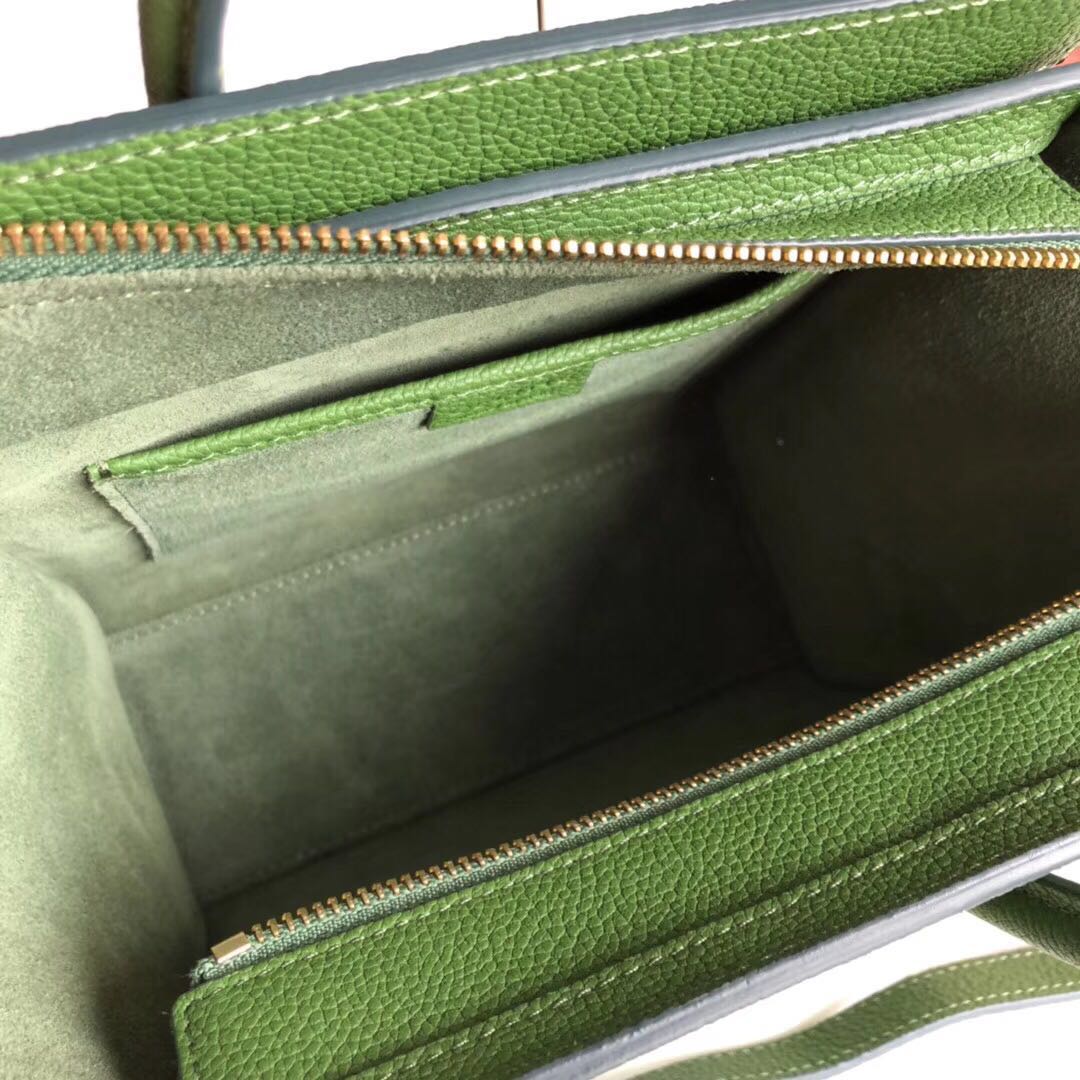 celine欧洲官网价格表购物加微信bag88866 新色笑脸包海外原单NANO LUGGAGE牛皮手袋 顶部为拉链闭合。内设简洁扁平口袋。银色五金。可拆卸肩带。可单肩或斜挎 尺寸20cm