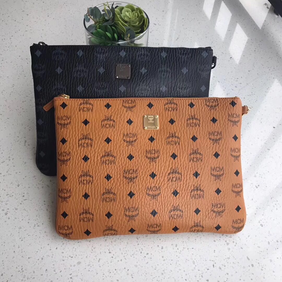 mcm仿版包包的价格购物加微信号bag88866 MCM2018版新款 TARK手拿包。经典印log花纹。信封明星钱包日韩版手夹男女通用可手拎带拉链。尺寸:34*24。手绳长14cm