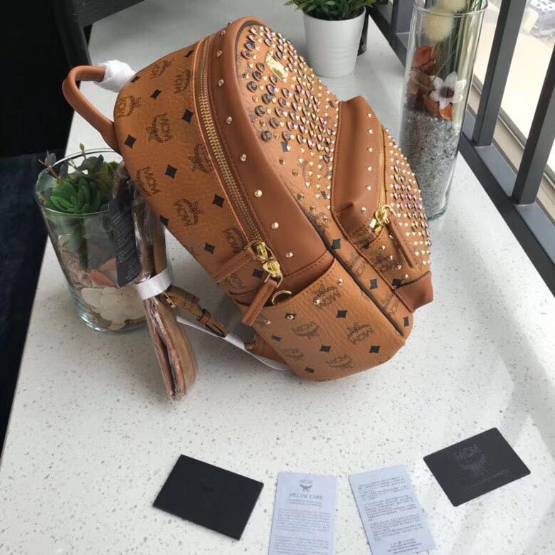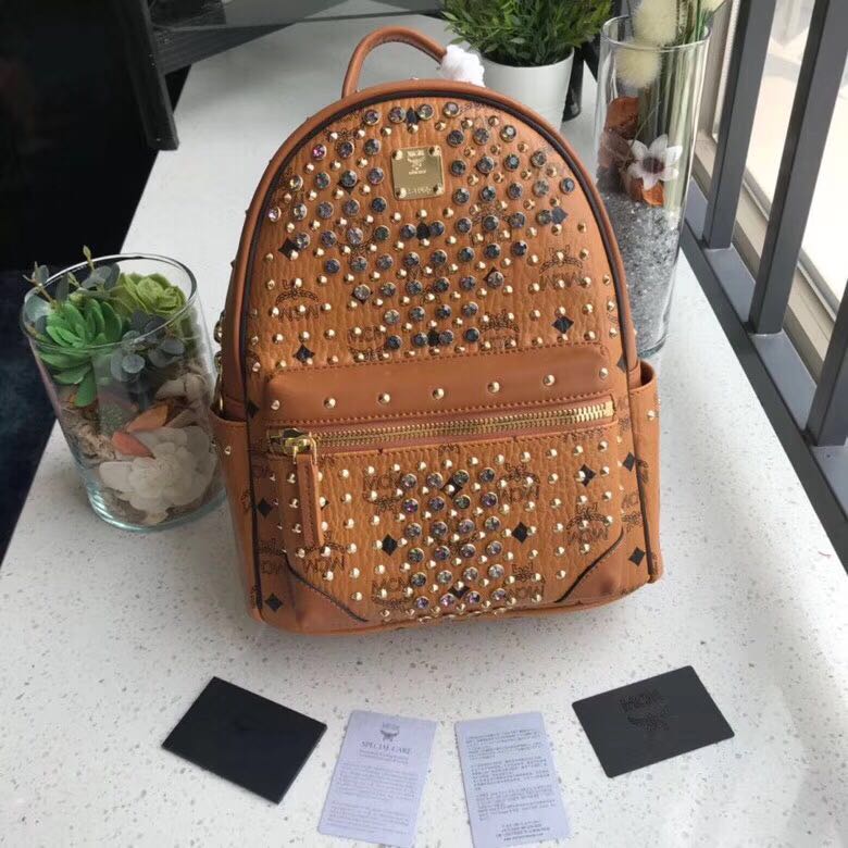 淘宝哪些精仿mcm的店铺购物加微信bag88866 2018新款MCM镶钻DIAMOND VISETOS铆钉镶钻。全新做法顶级升级满钻系列双肩包小号尺寸:33x27x13
