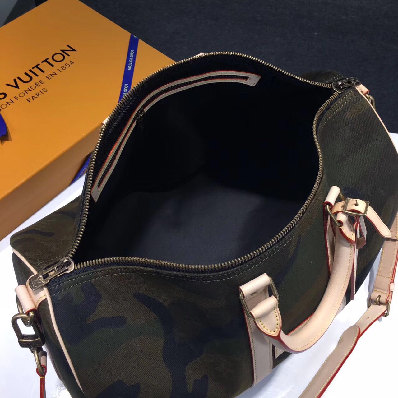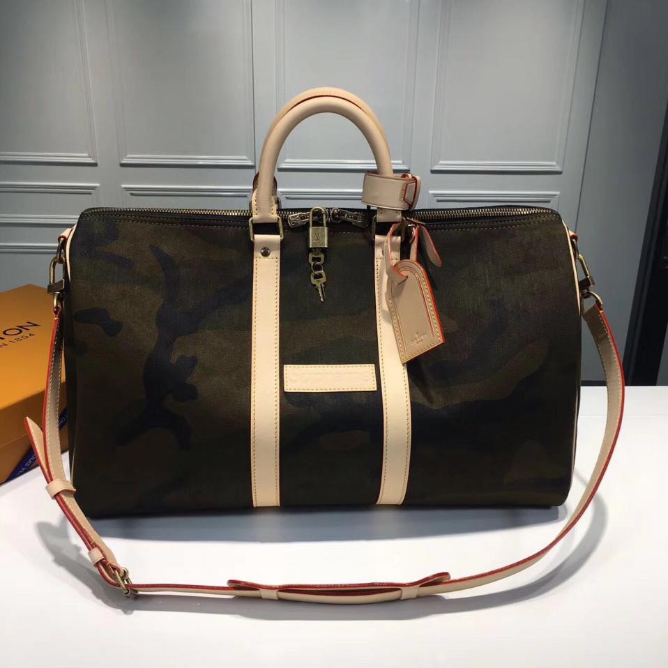 新品复刻版迷彩旅行袋【品牌】:LV路易威登 【款号】:M43466【尺寸】:45+27+20【材料】:进口台湾布料 全钢青铜五金 正品开发对花 对版 手工一流