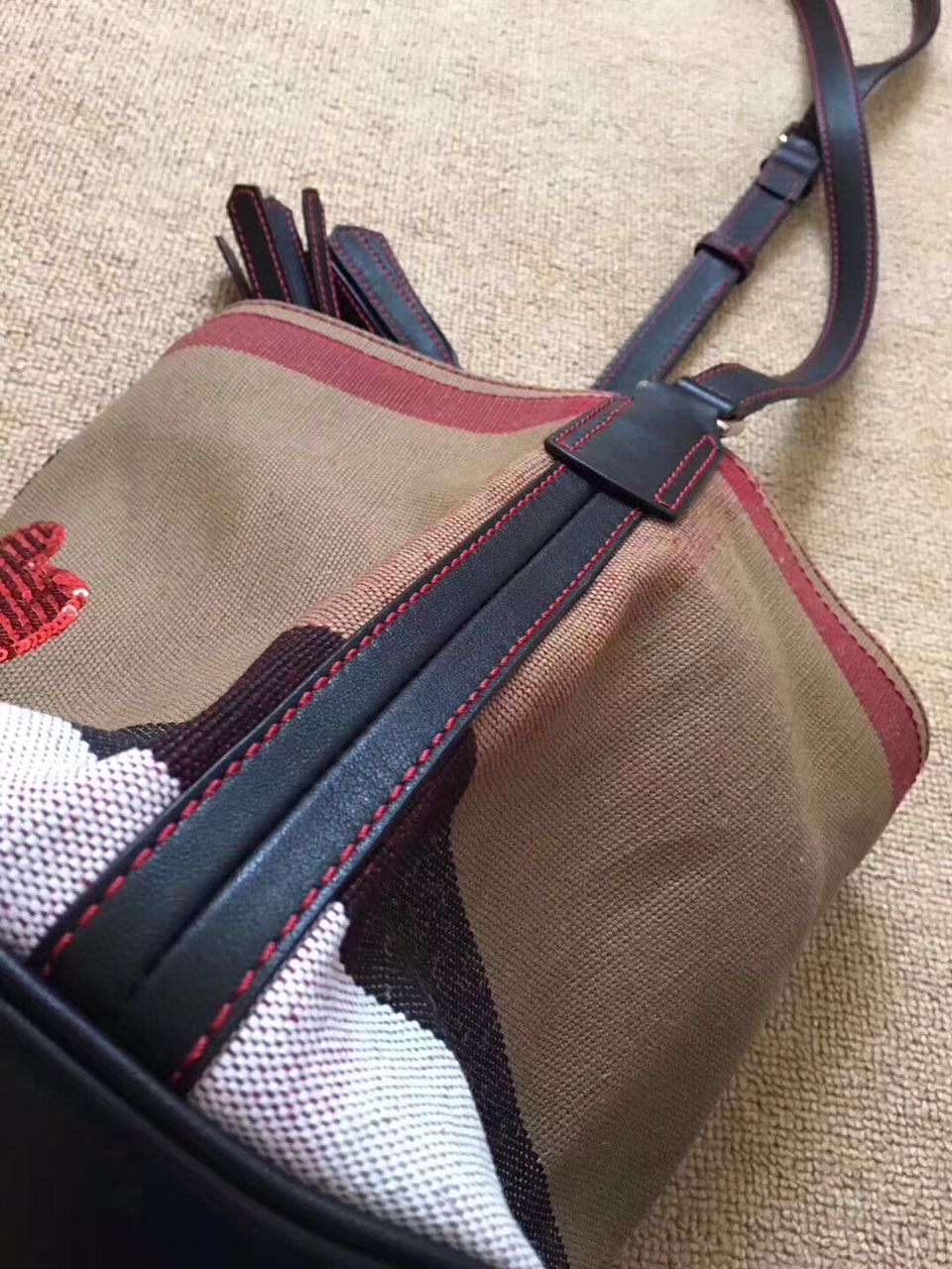 巴宝莉帆布水桶包真假 B家小号桃心麻料水桶包,原版防水黄麻配原版纳帕头层牛皮,细节做工无可挑剔,非常棒!尺寸:17/15.5/24.5cm