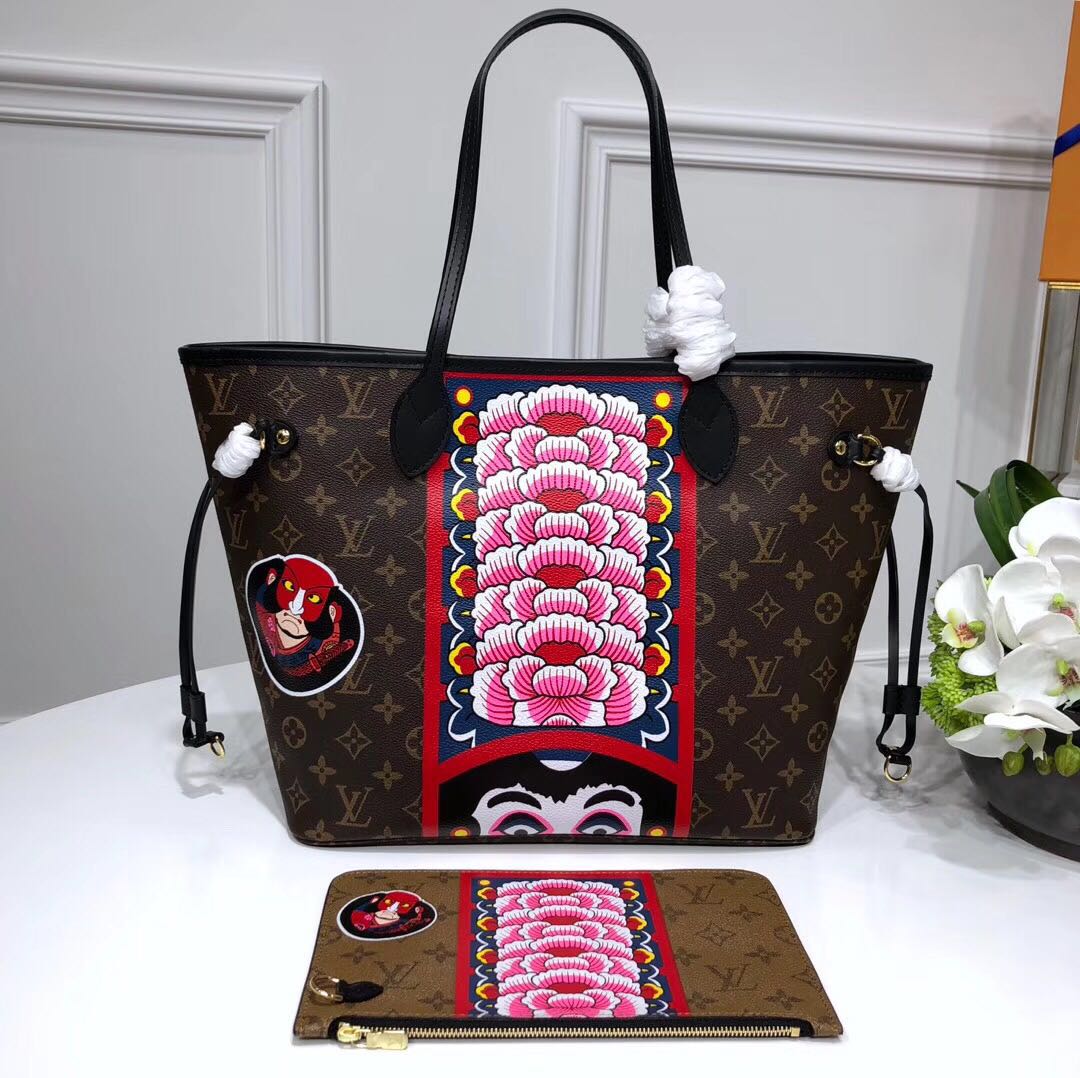 路易威登 LV M43499 歌舞伎贴饰 印花Monogram Neverfull Nicolas Ghesquière为2018早春系列创作的大尺寸歌舞伎贴饰使此款Neverfull手袋散发极为出众的时尚气息。这一日式设计元素成为Monogram帆布上的精美印花,造就此款令人心动、极具收藏价值的珍品,尺寸32x29x16cm