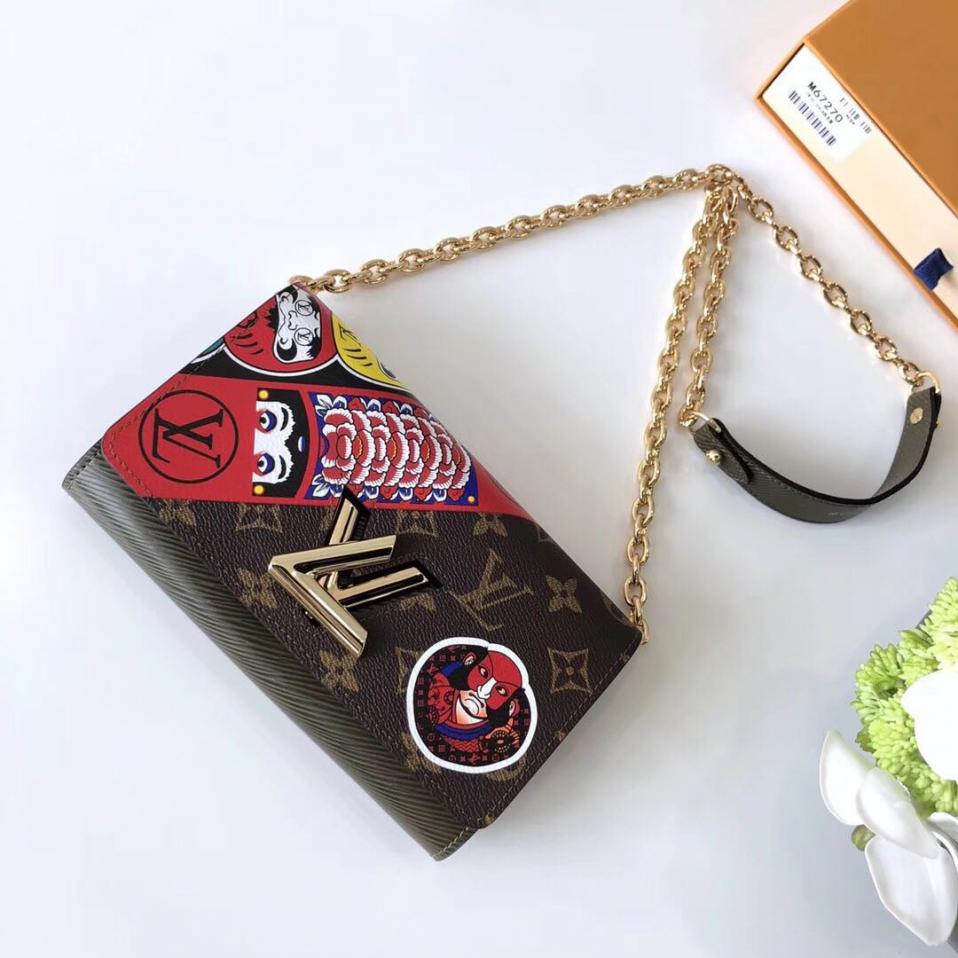 lv2017限量版 原单~M67270 借鉴山本宽斋的艺术特色,设计师NicolasGhesquière在此款Monogram帆布材质的TwistChain钱夹中融入歌舞伎贴纸元素。个性十足、风格百搭,此款钱夹既可手持,亦可借由其长包链挎于肩头 19.0x12.5x2.5cm