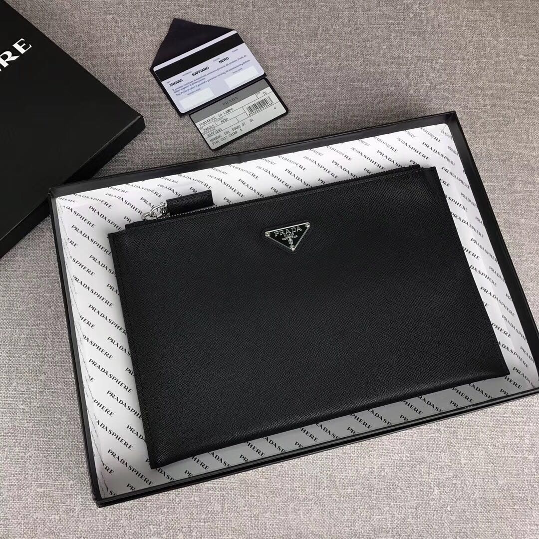 prada手包仿品【原单代购级】PRADA男士手包专柜最新款式,官网同步,正品开发,型号2NG005,颜色:黑色/滴胶三角唛,内码布标175代工码意大利顶级原单十字纹牛皮质感极好,内里进口羊皮,原单Lampo拉链 进口白钢五金配件!精湛走线均匀整齐 油边顺滑,做工精致如图可见,尺寸:长28cm高18cm【配原单包装盒身份证卡片编号可扫码】