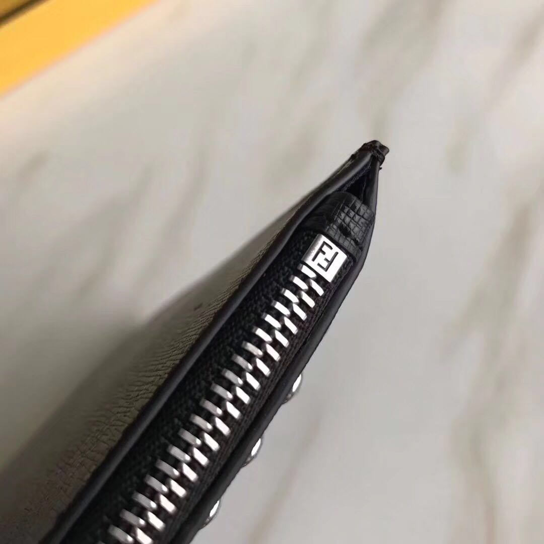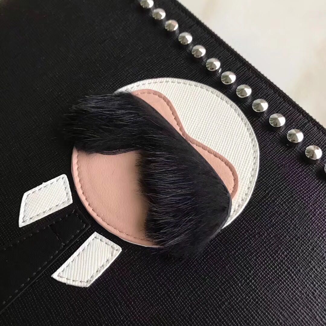 fendi男士手包 FENDI 0078克公仔 老佛爷精美小牛皮拉链手拿包。拼色和皮草镶嵌装饰打造出标志性的KARLITO形象。28cm(全套包装发票)