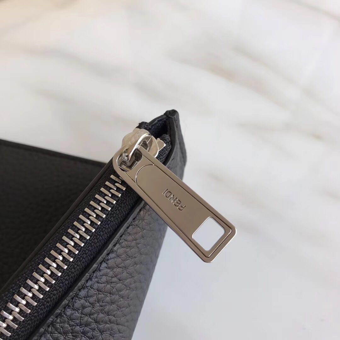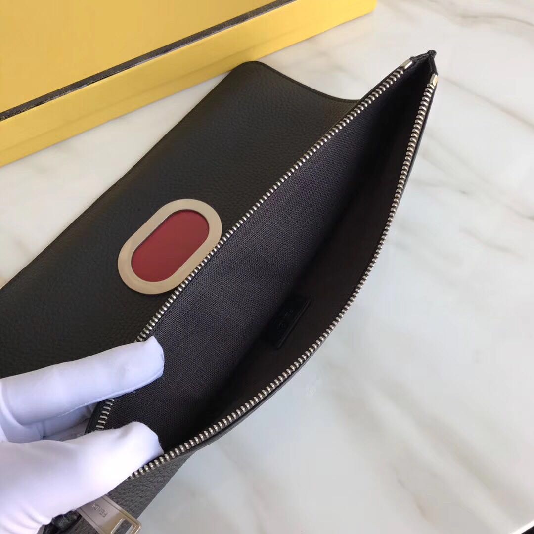 芬迪老佛爷手包价格 FENDI 0078 荔枝纹罗马纤薄手拿包,金属贴饰,呈现从FENDI FACES汲取灵感的“无语”表情形象。30cm(全套包装发票)