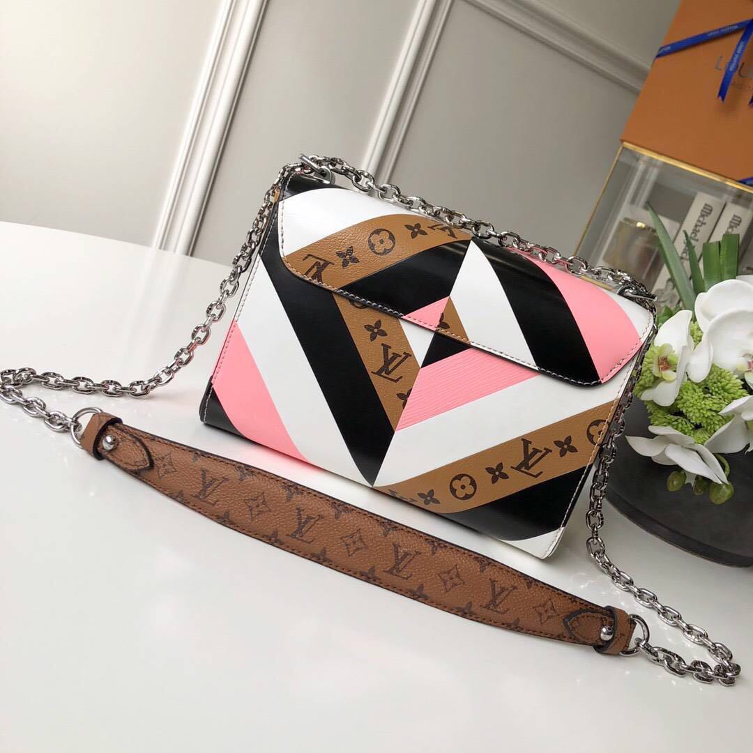 lv邮差包拼色好看吗 原单 TWIST 17秋冬 拼色拼皮 链条包 单肩背斜跨包 M54723 蓝色 新款到货 Petite Malle Monogram 手袋采用了路易威登传统的时尚设计。 尺寸: 23x18x8CM(长 x 高 x 宽)