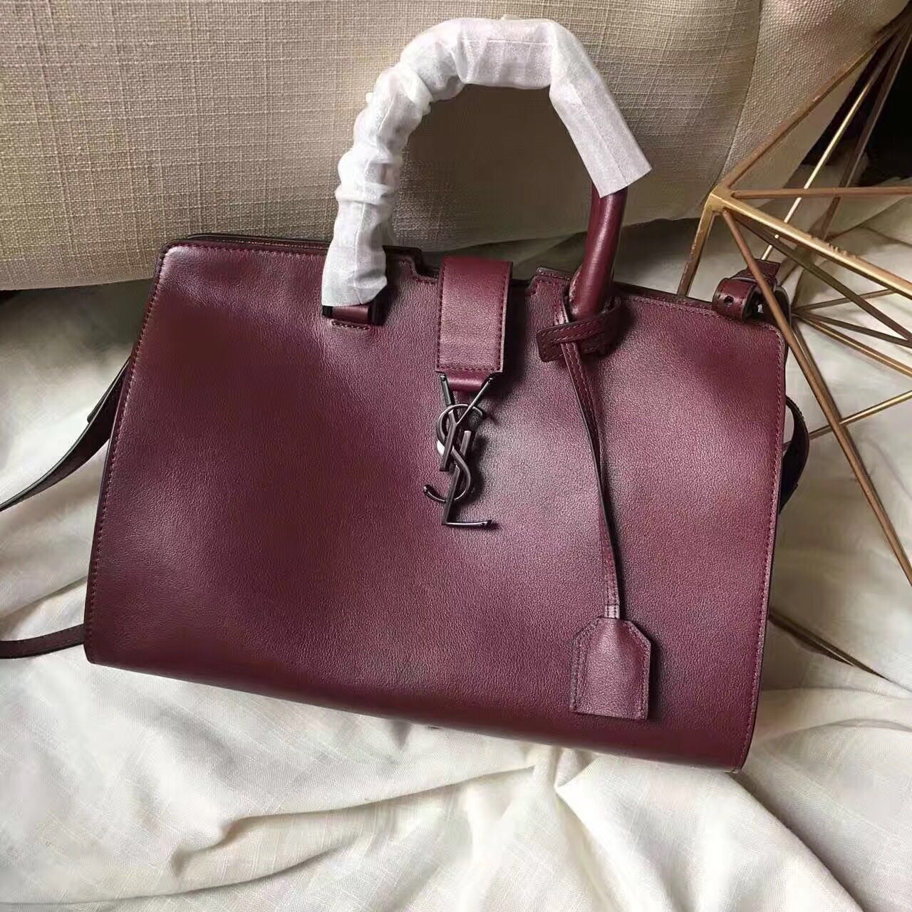Ysl~cabas 复古五金配件 酒红排单中皮料手感饱满,韧性十足,边角弯位圆滑立体,复古色五金扣件,经典中带有古典韵味,尺寸30cm