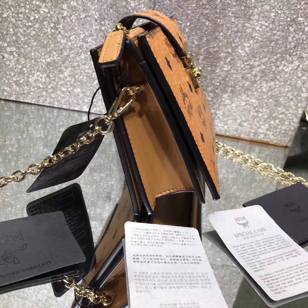mcm链条包怎么打开 独家实拍17年新款 复古印花单肩链条包可手拿尺寸:20*12