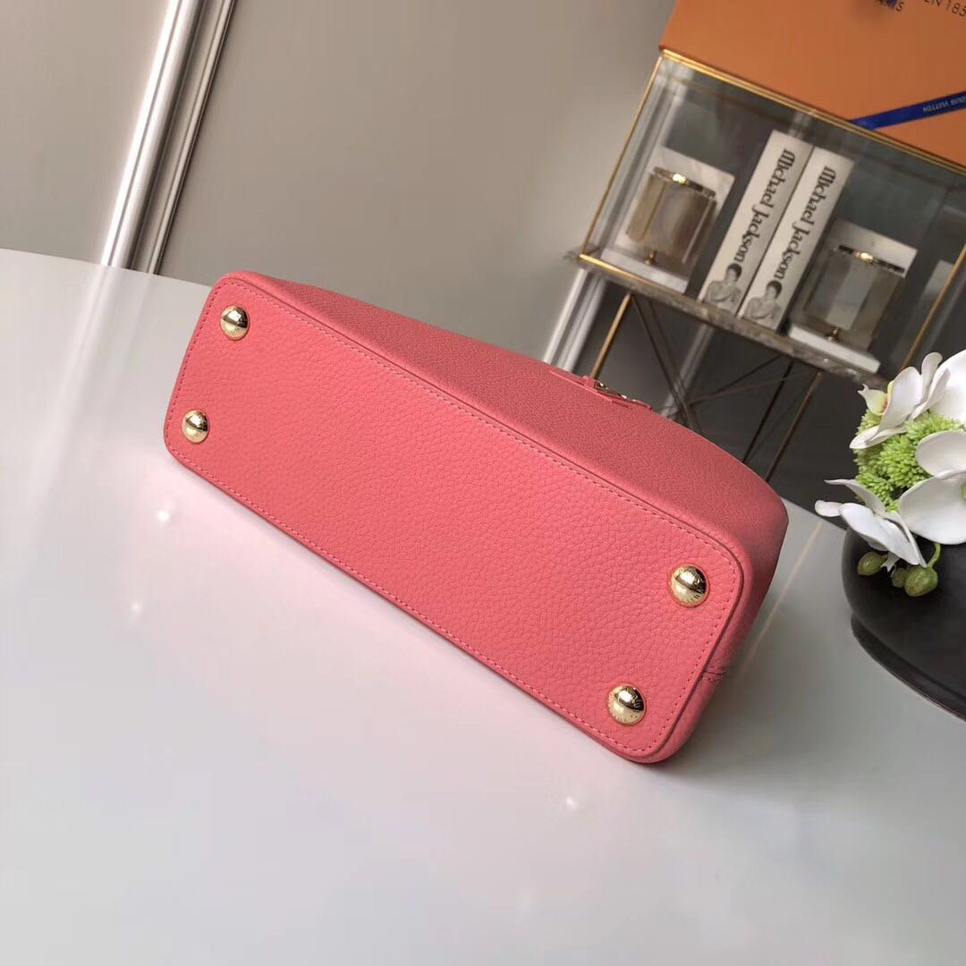 名字取自1854年路易威登第一家门店的所在地—rue des Capucines,是皮革高超工艺的集大成之作。 这款手袋以全粒面 Taurillon 皮革制成,结合了精致优雅的细节设计,包括硬度适中的手柄、连接手柄的华丽扣环,以及宽敞而实用的造型和两个内隔层。