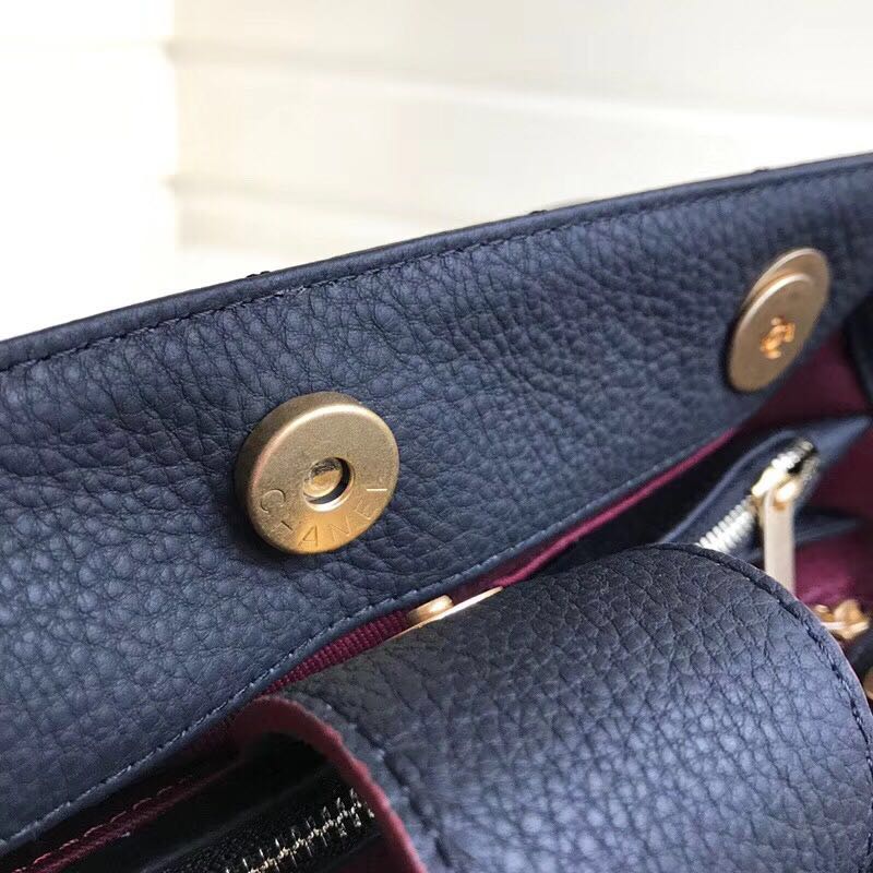 香奈儿购物袋多少钱 Chanel鹿皮纹购物袋,柔软皮料,正面口袋设计,超完美红线包边,粗大浅金链条,搭扣设计,多隔层内里、两层造型 尺寸:27/36/11