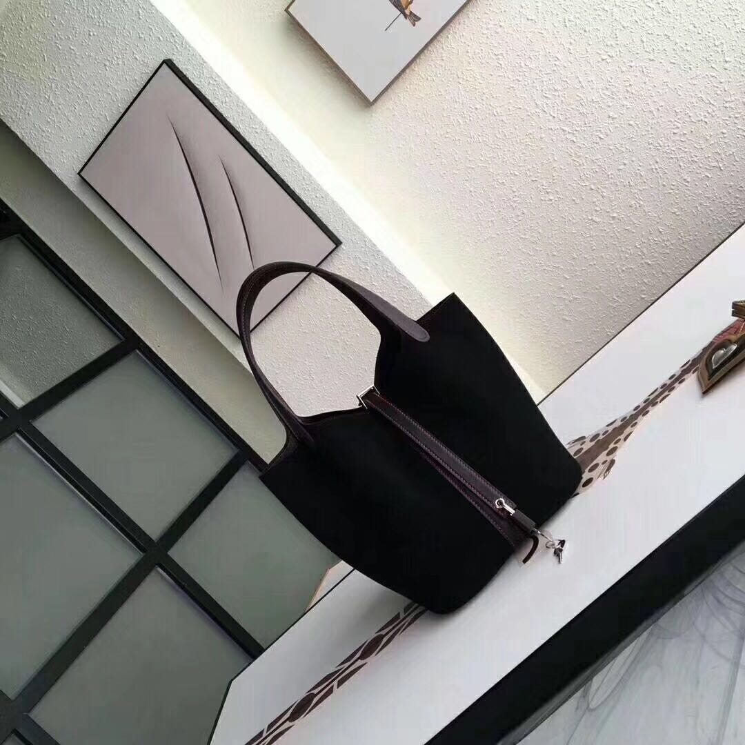 爱马仕菜篮子包18与22 冬天只要一冷 就喜欢所有毛茸茸的东西 软软糯糯的触感无法拒绝 看着就很温暖咯!所以,你是否就是缺一只麂皮绒包包? Hermes Piction菜篮子18/22 出货啦!图片尺寸22CM