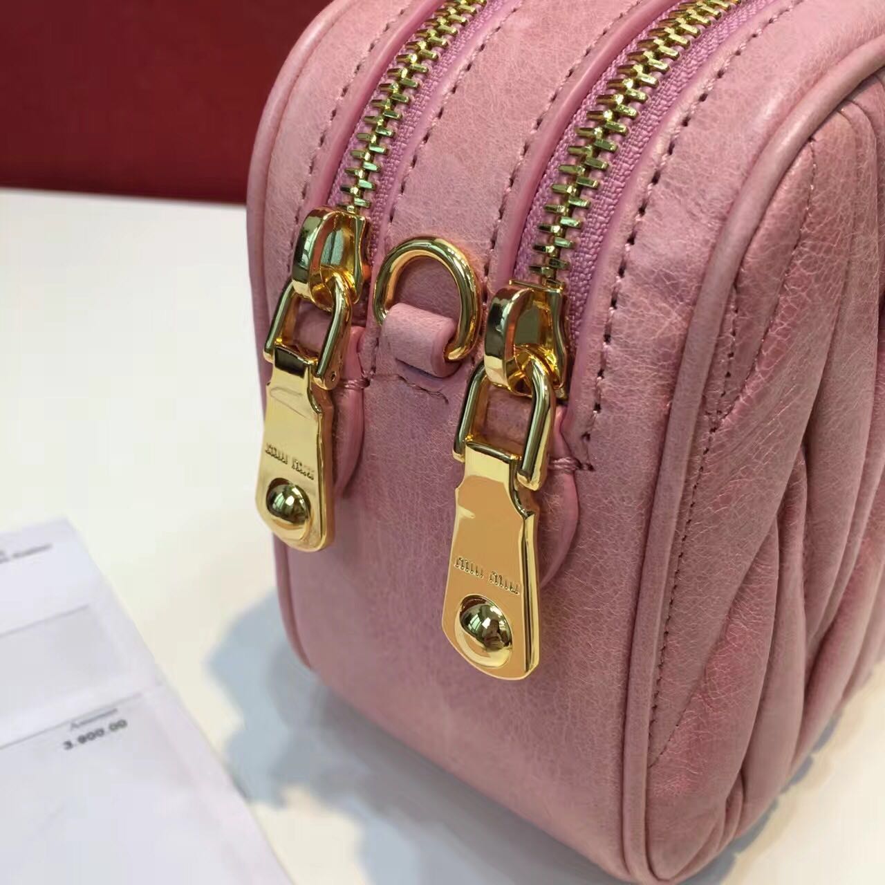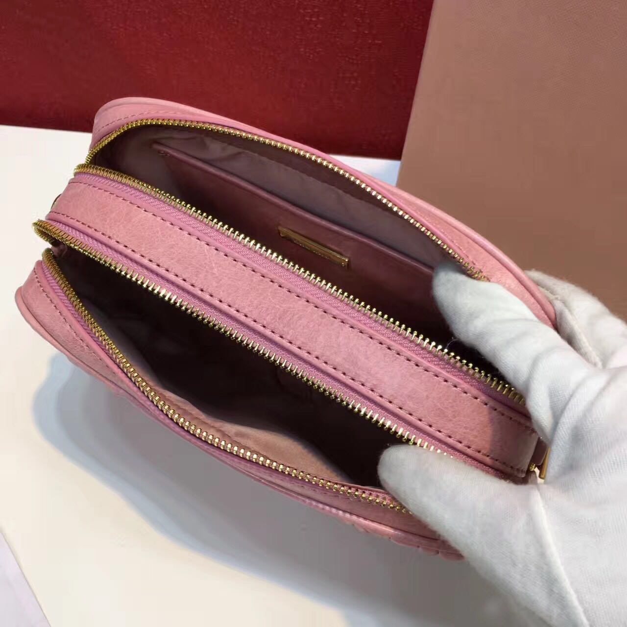 miumiu爆款斜挎小包回货啦款号:RT0539进口马油皮现货粉红,浅蓝,黑色。尺寸:21*12*6.5 原单品质'