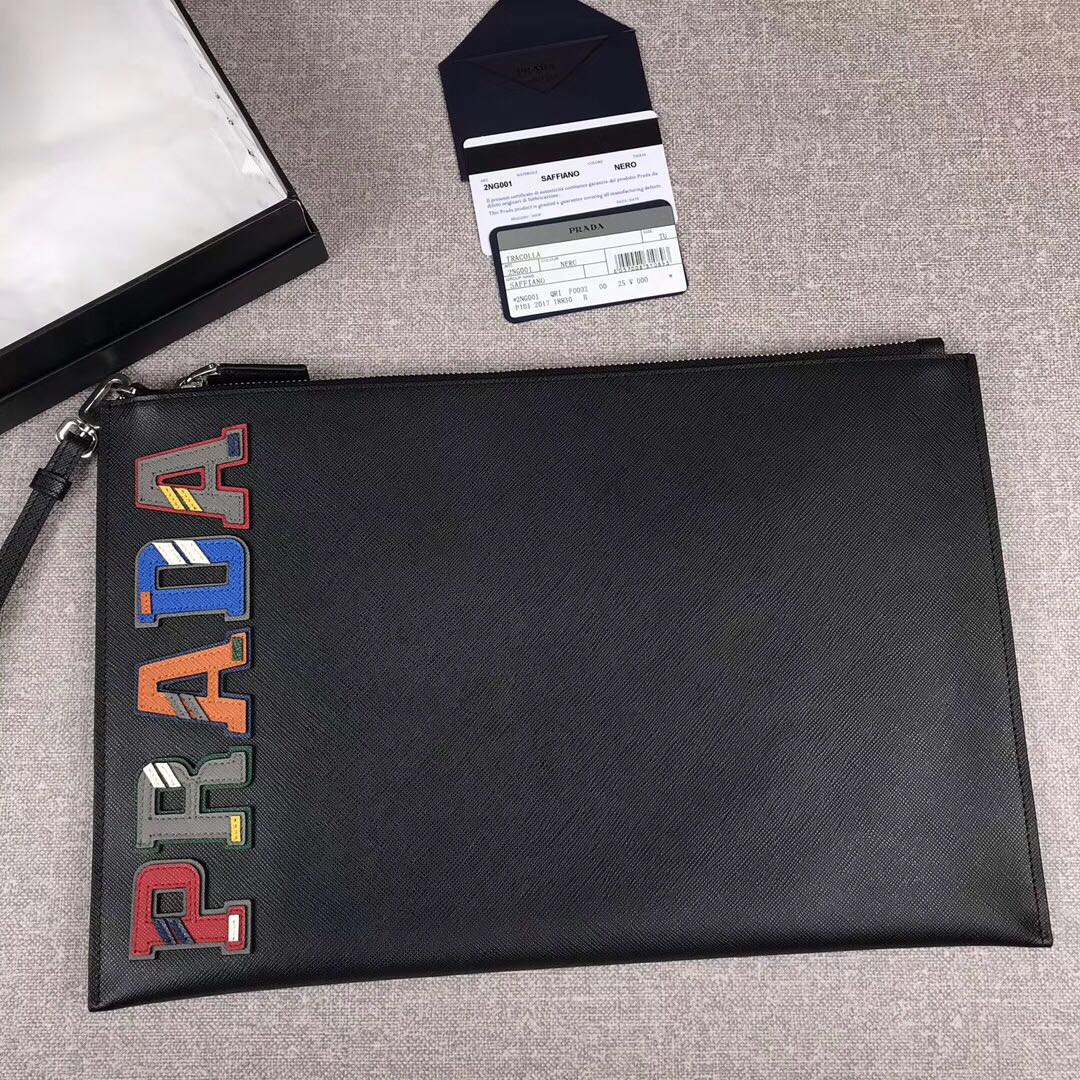香港代购什么便宜 【原单代购级】PRADA限量版手包专柜最新款式,官网同步,正品开发,型号2NG001,颜色:黑色,内码布标165代工码意大利顶级原单十字纹牛皮质感极好,内里进口羊皮,原单Lampo拉链 原单进口白钢五金配件!精湛走线均匀整齐 纯手工油边平滑,做工精湛 品质媲美正品,特别的大字唛设计凸显个性,时尚,奢而不华,男女通用,就是要你好看尺寸:长35.5cm*高23.5cm【配原单包装盒身份证卡片编号可扫码】