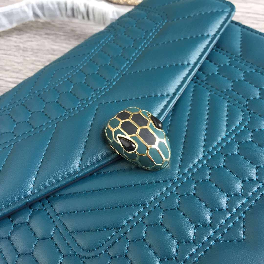 给领导送礼 Bvlgari水墨蓝迷人彩色蛇头一衍缝网格刺绣Scaglie 几何图案装饰 配真羊皮内里,市面上唯一对版每一个绣花细节完美极致出入专柜毫无压力独特的雨衣包装 纯铜式的五金 为复古在添神笔 毫不遮掩透露着艺术气息 尺寸:25*19*10cm配全套包装