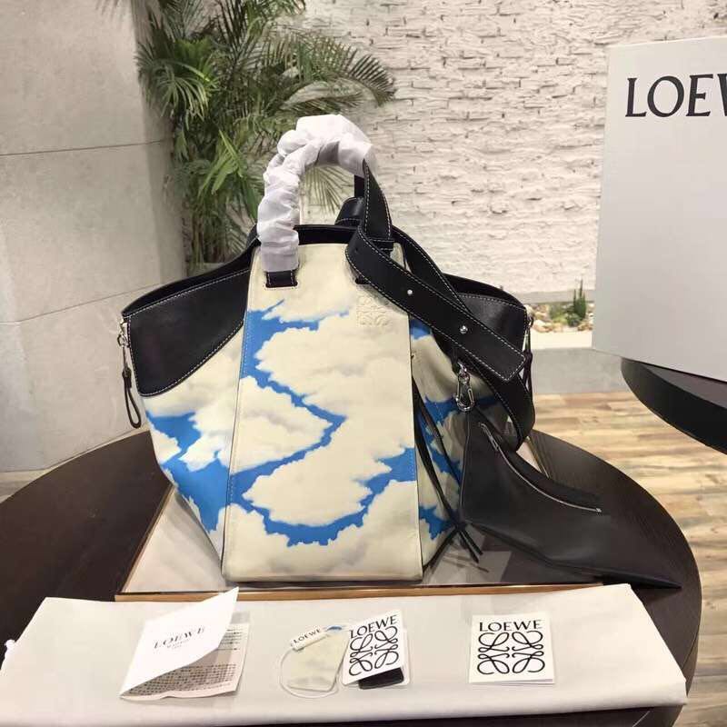 罗意威女包新款图片 【杨幂同款】罗威Hammock Bag2017最新蓝天白云出货拉专柜限量版 正品开模 独家喔大号有内袋 小号没内袋采用进口牛皮 创新的设计使手袋瞬间变身 六种背法 实用性超强 整个包身以蓝天白云为主题 背上它会是一道独特的风景线 众多明星已先行示范拉 Size:Size:大号 35x32x30cm配正品包装 大号细节