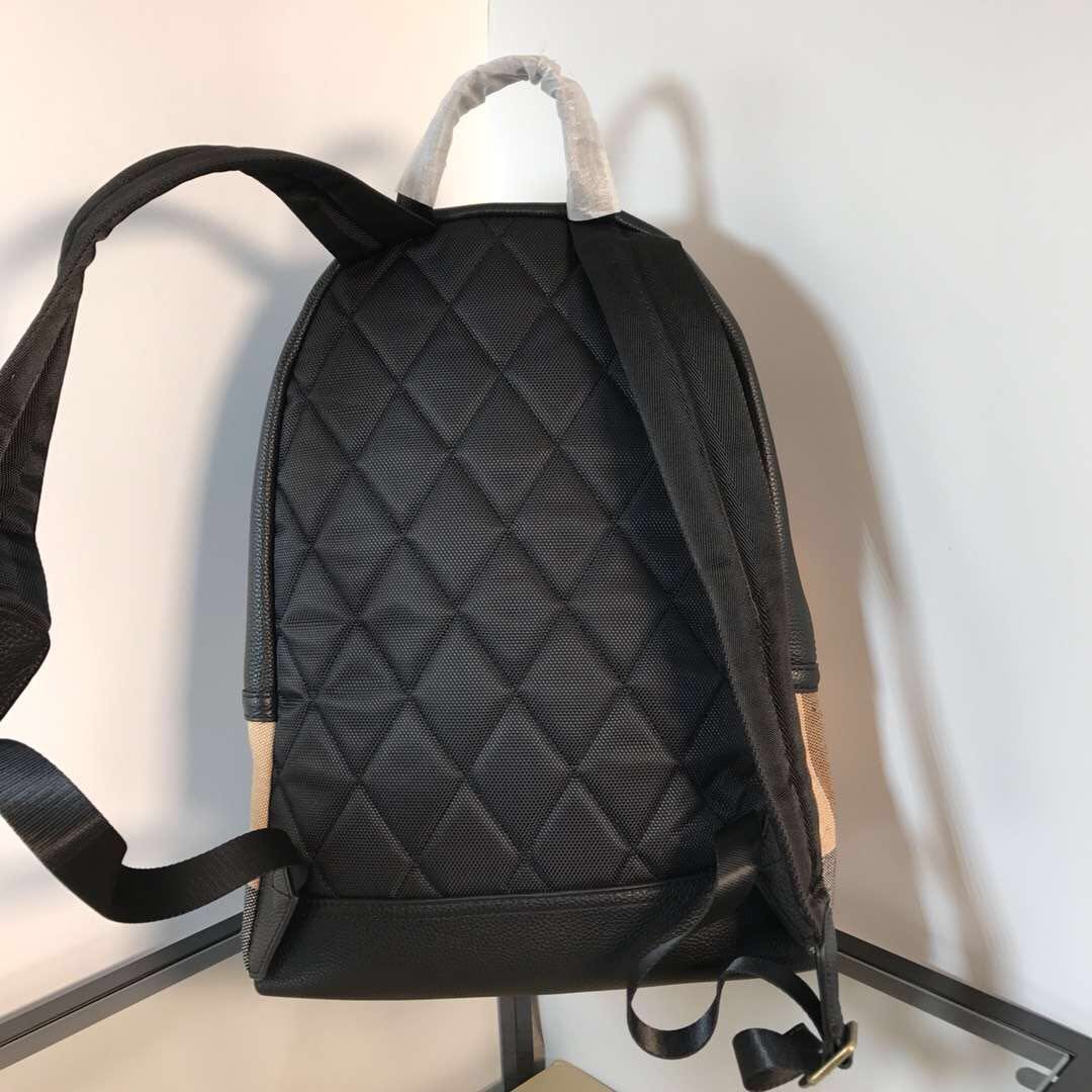 巴宝莉双肩背包内部图 B家蓝麻料背包,采用原版防水麻料配进口头层软牛皮、整体风格大气时尚,柔软手感非常舒服,透气麻料,非常实用!尺寸29/16/40cm
